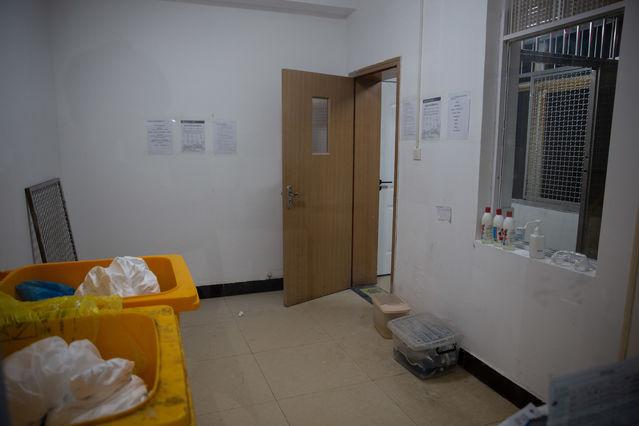 1月29日,武汉市汉口医院,一个科室临时隔出的半污染区,供离开轻症新冠肺炎患者病房的医务人员脱下最外层的防护服,并进行严格的多次消毒。中青报·中青网记者 李峥苨/摄