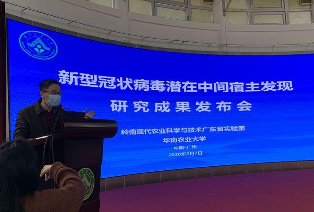 在华南农业大学针对新冠肺炎疫情研究攻关情况举行的新闻发布会上,华南农业大学、岭南现代农业科学与技术广东省实验室教授沈永义、肖立华等科研人员,通过联合攻关,在新型冠状病毒潜在中间宿主的溯源上取得突破。他们的最新研究表明,穿山甲为新型冠状病毒的潜在中间宿主。