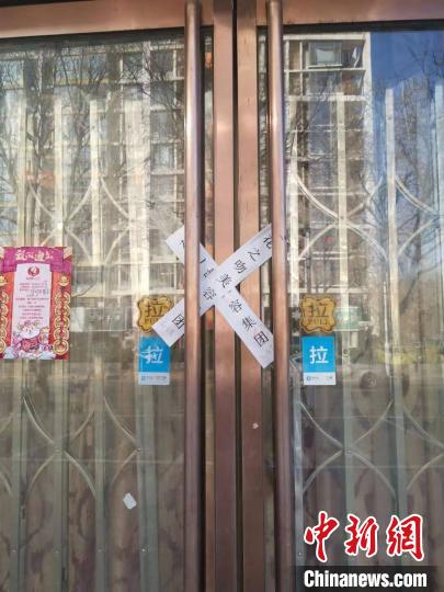 图为石家庄一美容院门口贴着封条。 谌诗雨 摄