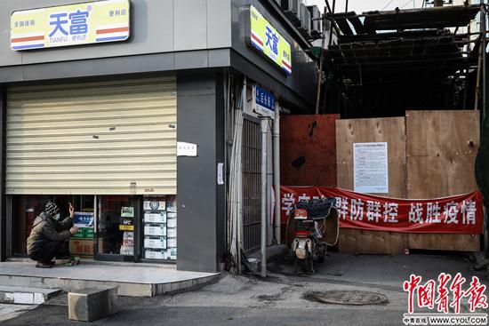 2月24日,湖北省武汉市,一名送货人员在商店取到货后扫码付钱。据了解 ,武汉市实行小区严格封闭管控以来,规定全市的商超门店企业不对个人进行售卖,“快递小哥”成为这些地方连接社区居民的“一股力量”,在武汉不少小区、街头、药店、超市等都能看到他们的身影。中青报·中青网记者 赵迪/摄