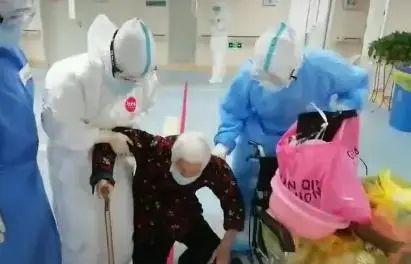 这里有难以言尽的感激之情。在武汉方舱医院,一位老人要出院,陪护过她的医护人员都来送行。离别之际,面对这群照顾她的丫头们,这位八十多岁的老人突然跪下来,医护人员赶紧把她扶起来,老人边哭边说:“孩子们,谢谢你们……”