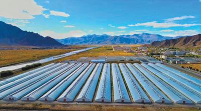 白朗县巴扎乡冲堆村农民边多在4亩青稞地上搭起了蔬菜大棚。这天阳光明媚,边多拉起了自家大棚上的棉被,让蔬菜见见阳光。