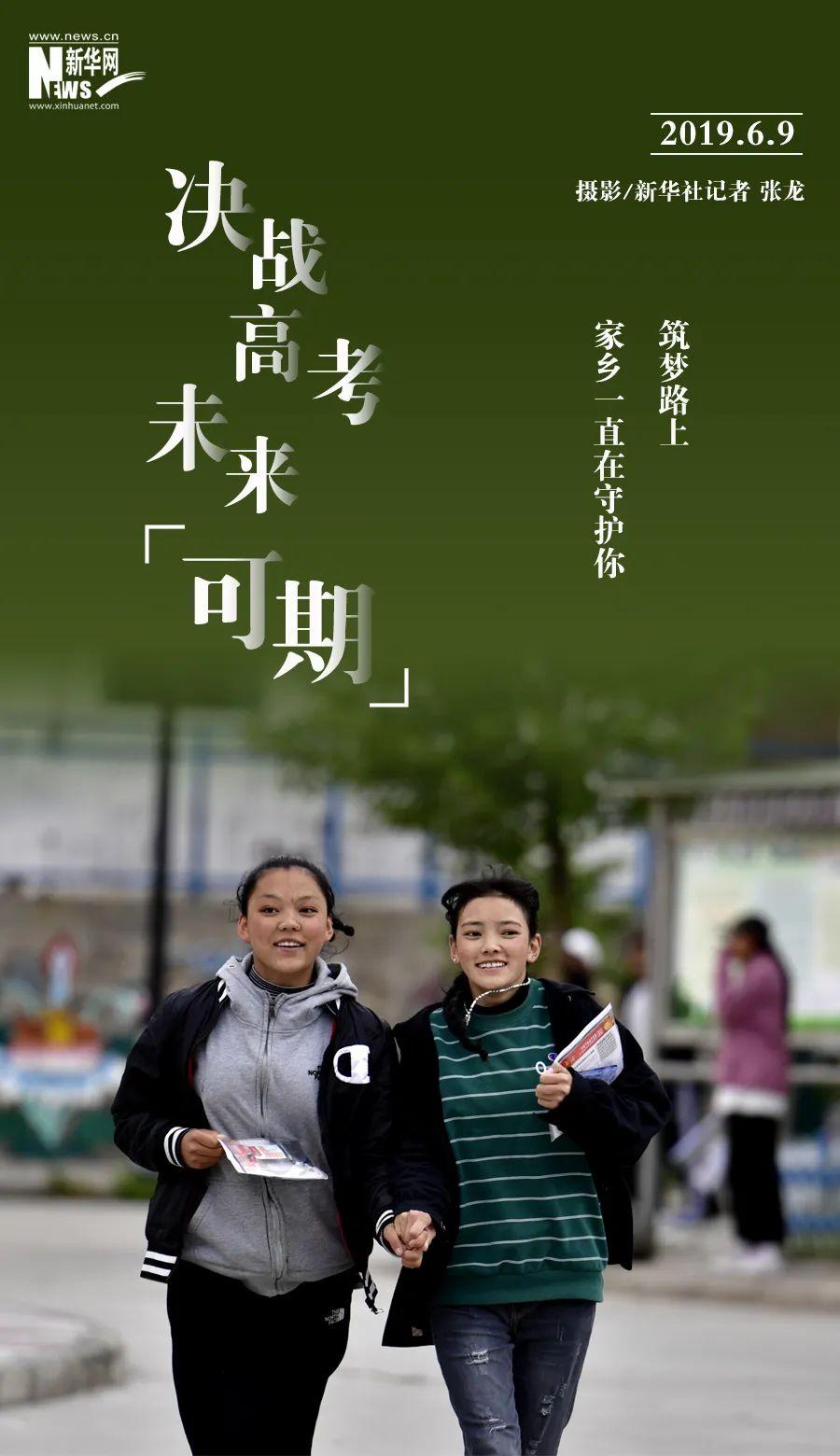 在青海省玉树藏族自治州民族中学高考考点,两名考生走出考场(2019年6月9日摄)。新华社记者 张龙 摄