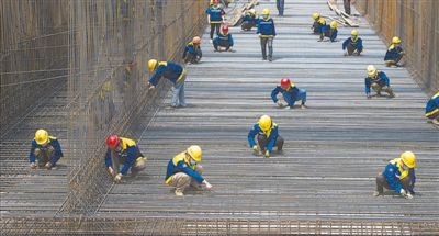 湖北省武汉市武九北综合管廊工程于3月底复工复产,目前进展顺利,建成后可将原本一条条单独铺设的线缆管线集中,减少城市的“蜘蛛网”“拉链路”,被誉为改善市容的“收纳神器”,对提升城市品质有积极作用。图为4月30日建筑工人在武九北综合管廊工程施工现场作业。