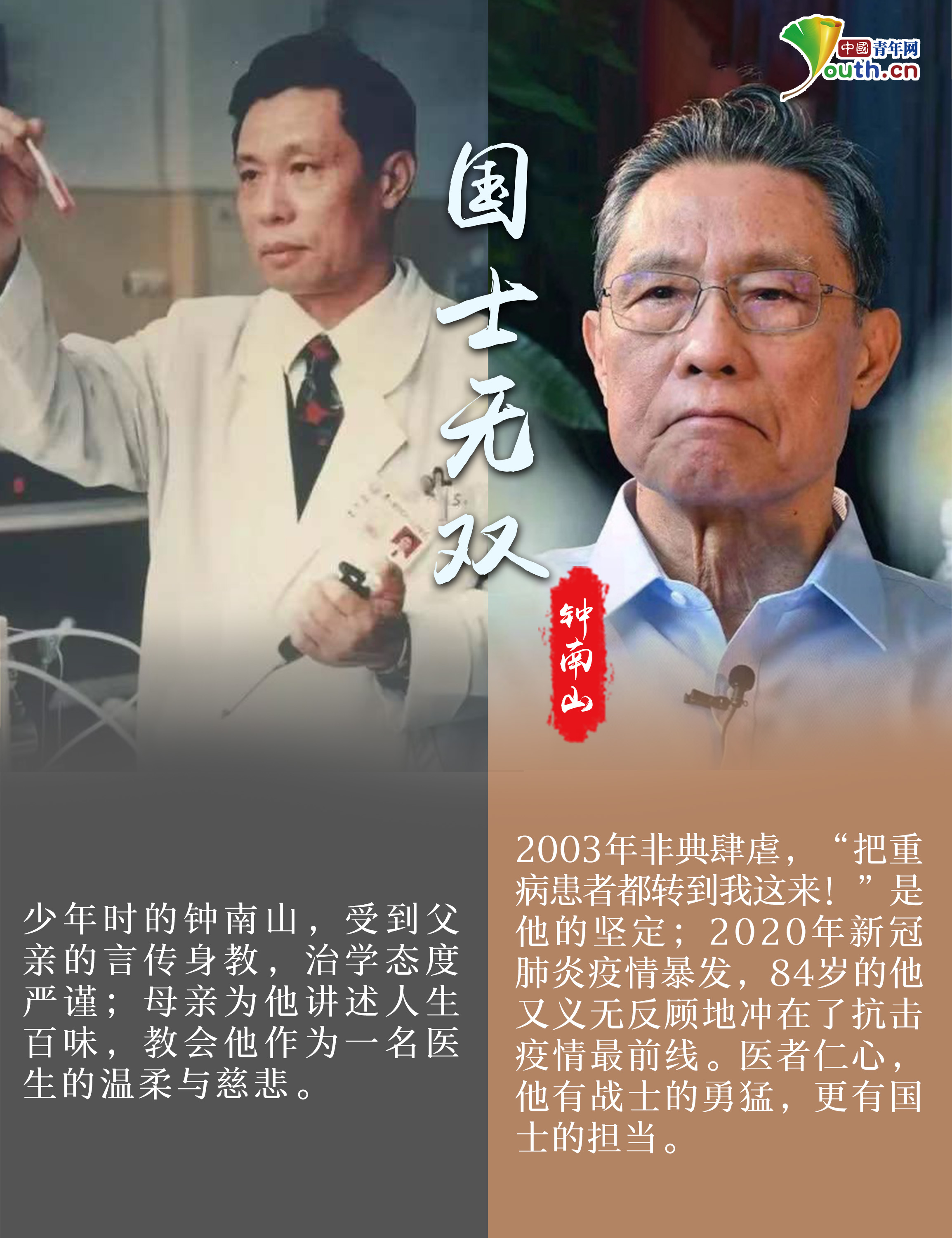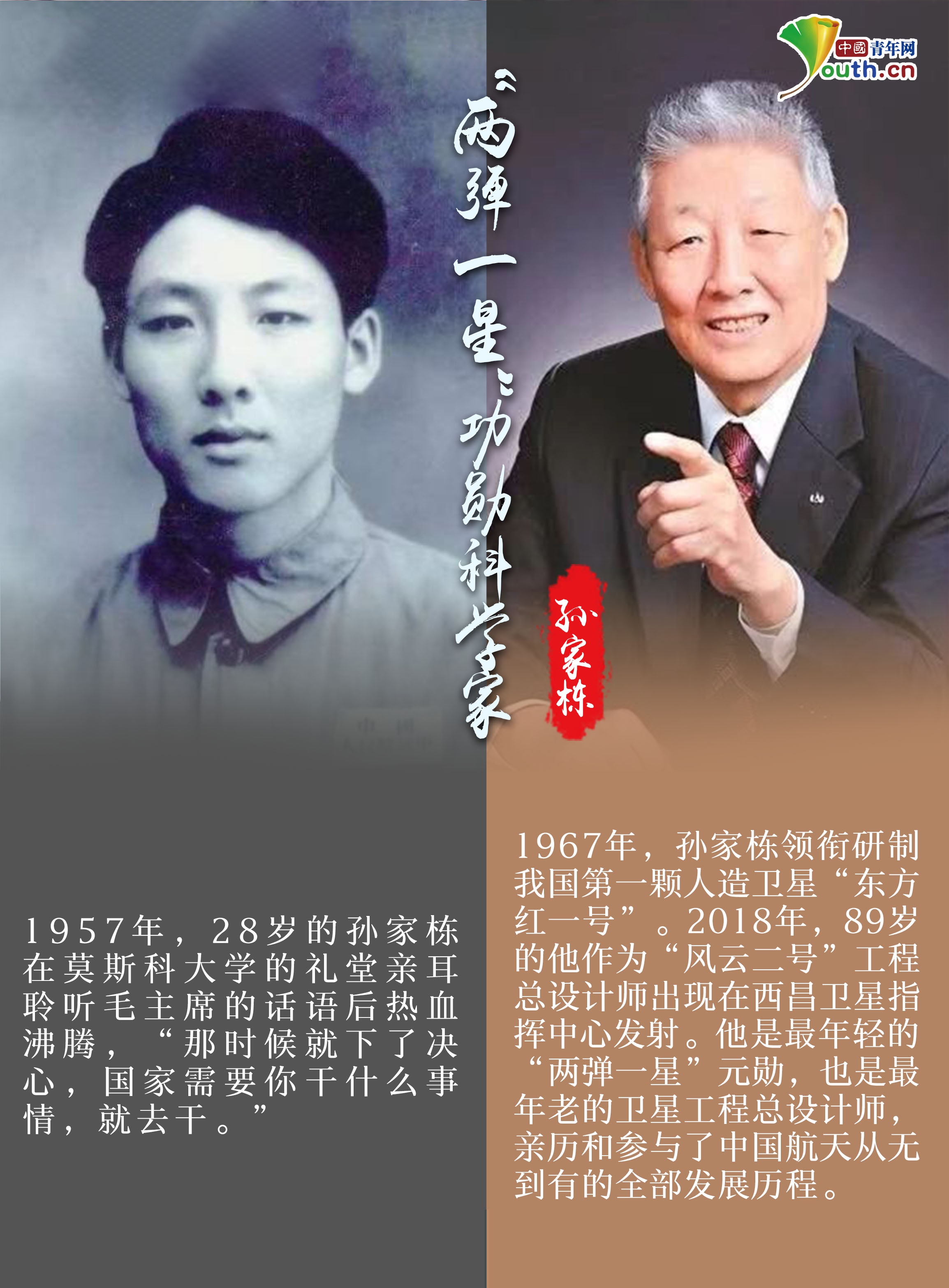 中国青年网北京5月4日电(记者 叶婉莹 实习生 任文颖)青年时期,他们怀揣梦想,在心中立下凌云之志;多年后,他们初心未改,用一生的时间实现诺言……从“为国筑起海防长城”的刘永坦到航天“大总师”孙家栋,从解决国人吃饭问题的袁隆平到扛起应对疫情重任的钟南山,从党的好战士张富清到翻译泰斗许渊冲……他们择一事、立一志、终一生,用奋斗书写青春,用一生追逐梦想。
