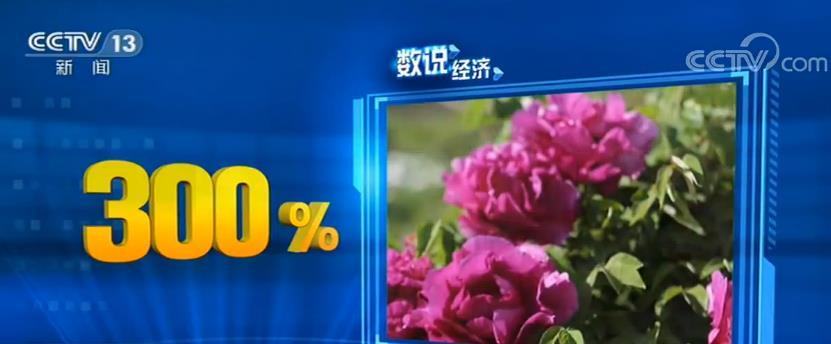 第二个数字——人均年收入提高了300%。这说的是哪儿?这就要说到中国人特别喜欢的、有着美好寓意的花中之王——牡丹。牡丹盛开,国色天香,不仅“红了日子”,还让葫芦岛建昌县洞底下村的村民们“鼓了钱包”。建昌县是辽宁省最贫困的县之一,这里的村民人均年收入常年徘徊在5000元上下。经过几年的努力,牡丹花装点了美丽乡村、牡丹籽榨油富裕了村民,让当地贫困户的平均年工资达到了20000元。