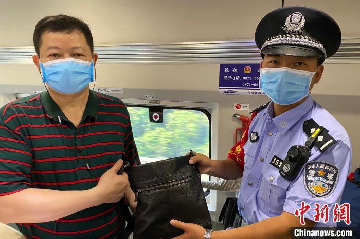 中新网昆明5月7日电 (毕新来 陶圆)记者7日从昆明铁路公安局开远公安处获悉,一名乘客将装有10万元人民币现金的皮包遗落在列车卫生间,被乘警发现后,将10万元物归原主。