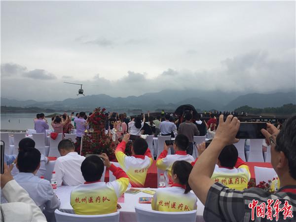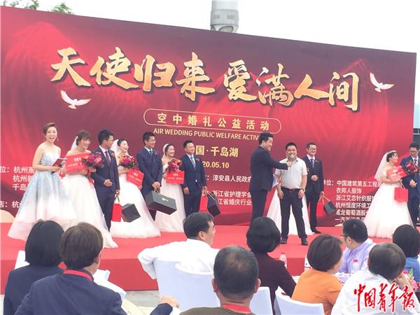 今天,浙江6对驰援湖北抗击新冠肺炎疫情医护人员,在千岛湖举行“天使”归来,爱满人间空中婚礼。中国工程院院士李兰娟发来视频祝福新人。