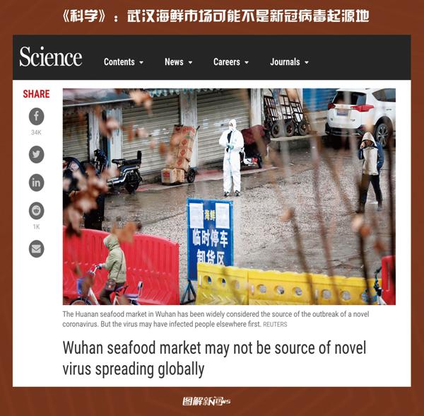 2020年1月26日,《科学》杂志援引美国乔治敦大学传染病专家丹尼尔·卢西的观点指出,武汉海鲜市场可能不是新冠病毒起源地。 人民网供图 王政淇/制图