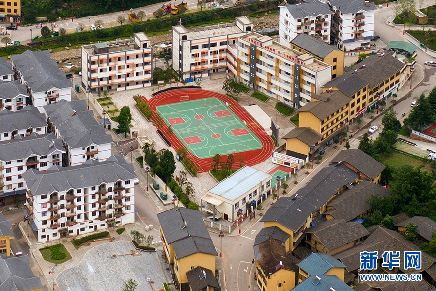 图为今年7月重庆市石柱县中益乡航拍图片,场镇面貌焕然一新。