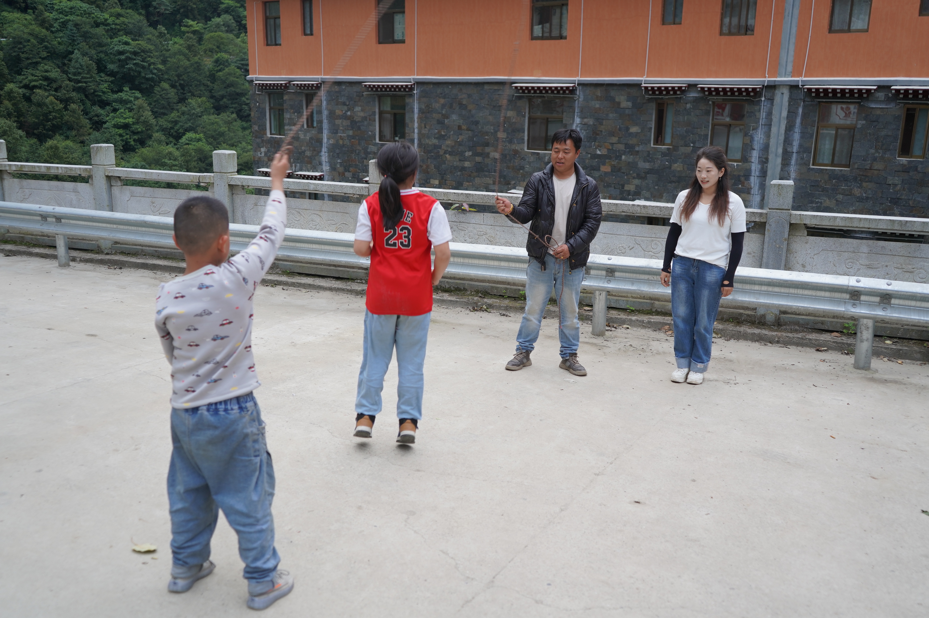 结束一天的忙碌,古如的女儿一家在家门口跳绳,其乐融融