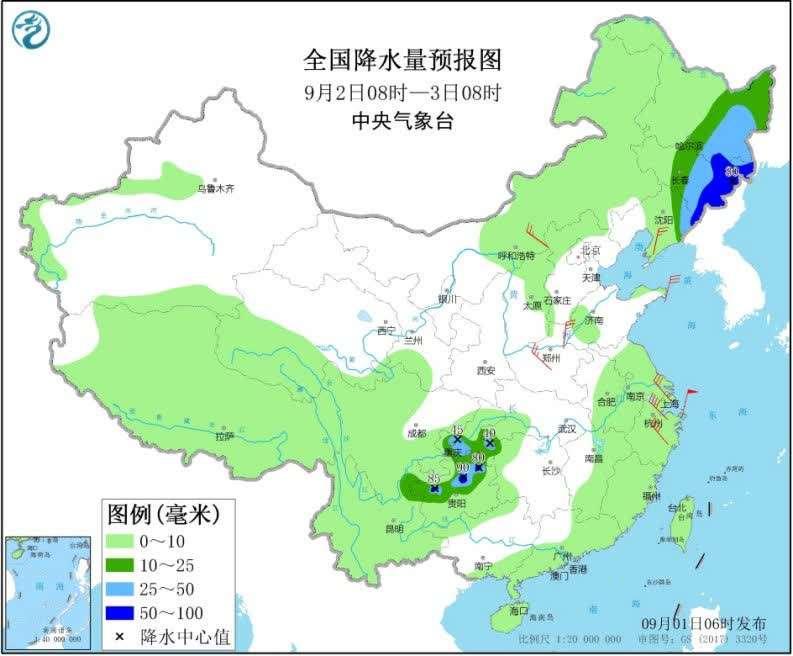 9月2日至4日,随着“美莎克”继续向北行进,我国东北地区将出现较强风雨天气。预计2日夜间至4日,东北地区大部、内蒙古东北部等地将有中到大雨,部分地区暴雨或大暴雨;黑龙江、吉林、辽宁北部部分地区风力6~8级,局地阵风9~11级。