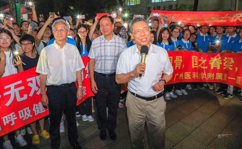 几近深夜,一扫疲倦的钟南山开心地说,“我非常感动,回到了家,回到了广医。”