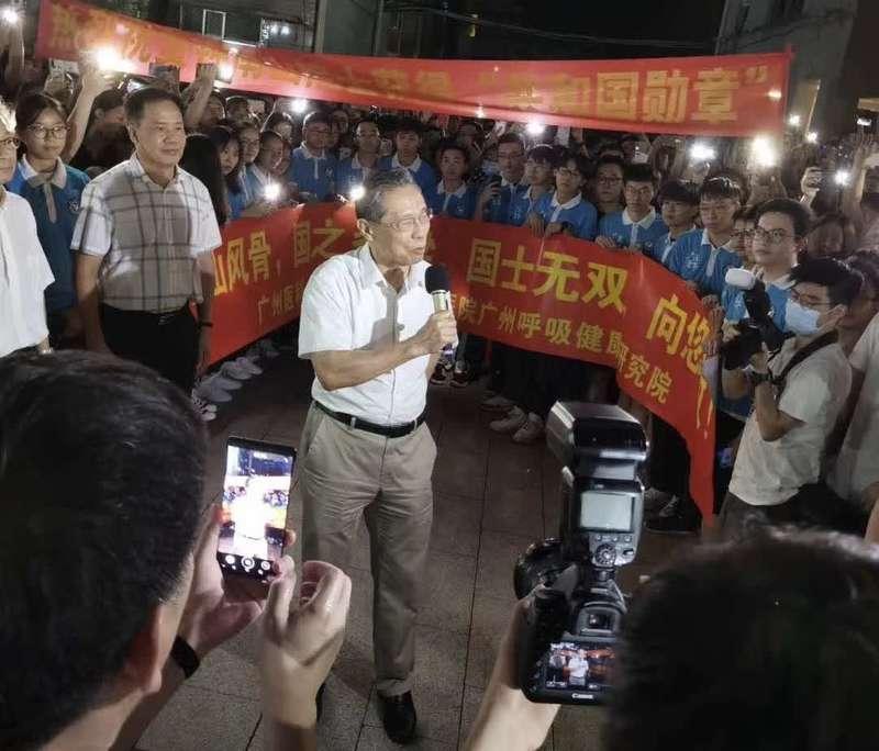 “南山风骨,国士无双!”9月8日22时40分,钟南山回到广医校园,便被数百名热情的师生们簇拥包围了起来,他们打开手机的灯光,迎接他们的“钟老师”。