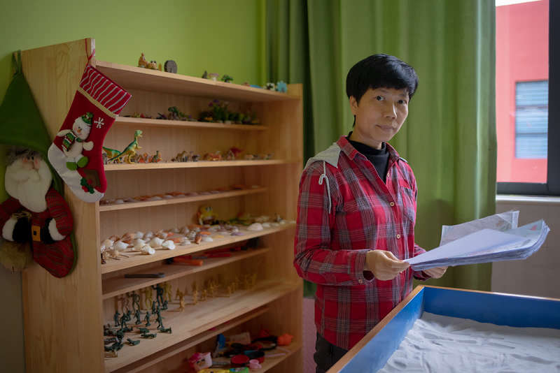 9月8日,贵州省毕节市纳雍县天河实验学校,来自广州天河第一小学的心理老师肖冬梅在办公室里,她今年8月底来到纳雍天河实验学校,对学生们进行一个月的心理课程辅导。中青报?中青网记者 李隽辉/摄