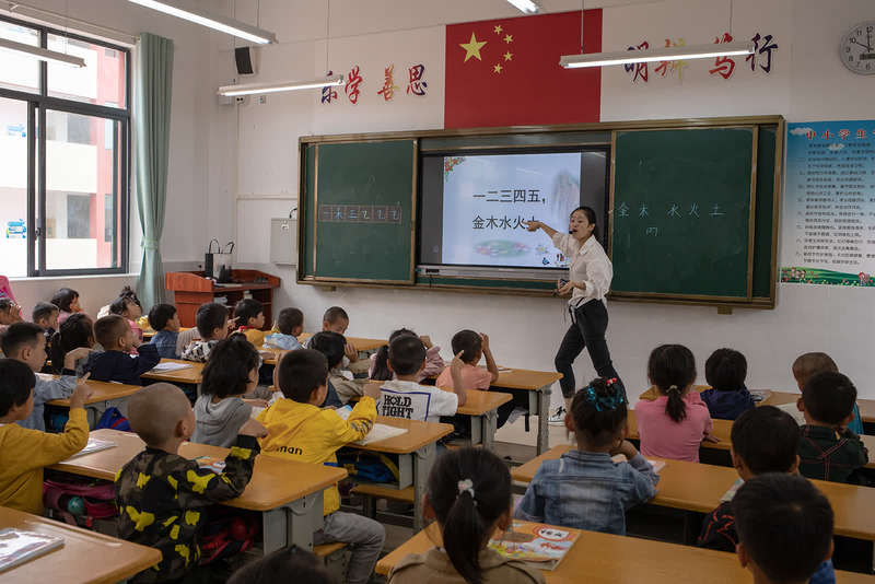 9月8日,贵州省毕节市纳雍县天河实验学校,学生们在明亮的教室中上课。中青报?中青网记者 李隽辉/摄
