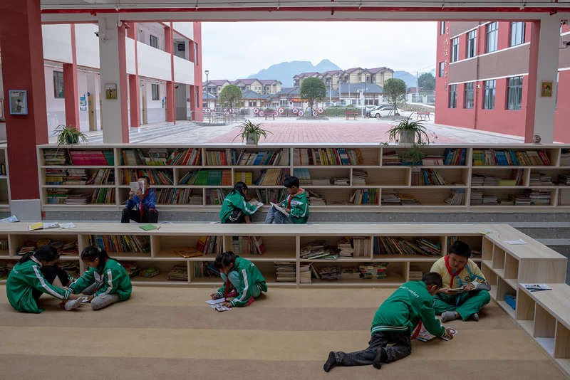 9月8日,贵州省毕节市纳雍县天河实验学校,学生们在阅读区域看书。中青报?中青网记者 李隽辉/摄