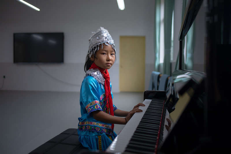 9月8日,贵州省毕节市纳雍县天河实验学校,六年级学生陆江婷坐在崭新明亮的音体教室里,为采访她的记者弹了一首《小星星》。虽然弹的是最简单的钢琴曲,但是作为一名刚刚从大山搬出来的孩子,在接触钢琴不到一年的时间里,已是难能可贵。