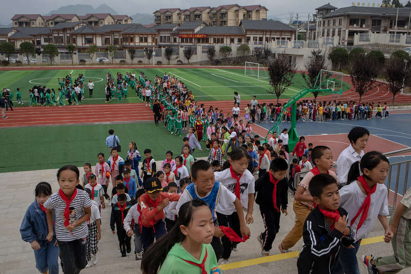 9月8日,贵州省毕节市纳雍县天河实验学校,学生们在崭新的操场上出课间操。中青报?中青网记者 李隽辉/摄