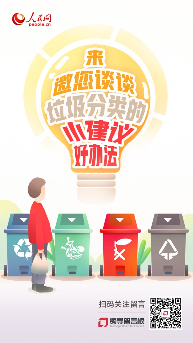 如何有效、快捷地推行垃圾分类?如何让回收的垃圾得到更好的处理?人民网《领导留言板》于9月4日起开展“谈谈垃圾分类的好办法”建言征集活动。不少网友针对加快分类设施建设、完善配套支持政策等方面积极建言献策。