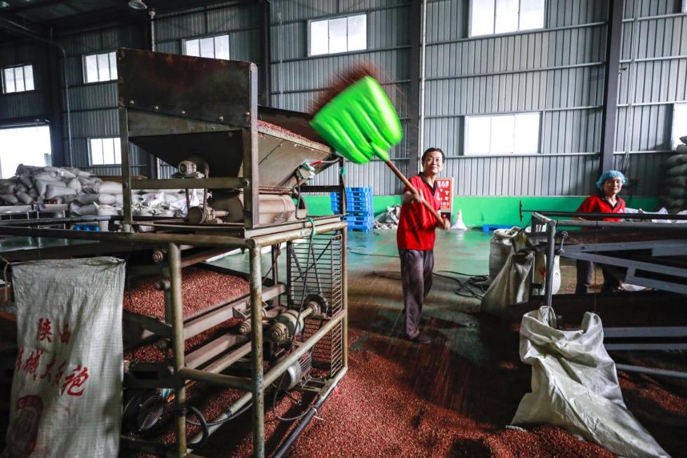 未来网韩城9月23日电(记者 谢青)在黄河岸边的陕西韩城,一种大红袍花椒以色艳、肉厚、味浓的特点备受调味品商的青睐。“我当年就是一个小椒农,靠着政府的政策一步一步走到现在,走上了致富之路。”四海花椒香料有限公司董事长张云海从事花椒种植已经超过30年,在种植、加工技术上逐渐精益求精。同时他也切身地感受到小小花椒树,正在成为致富大产业。