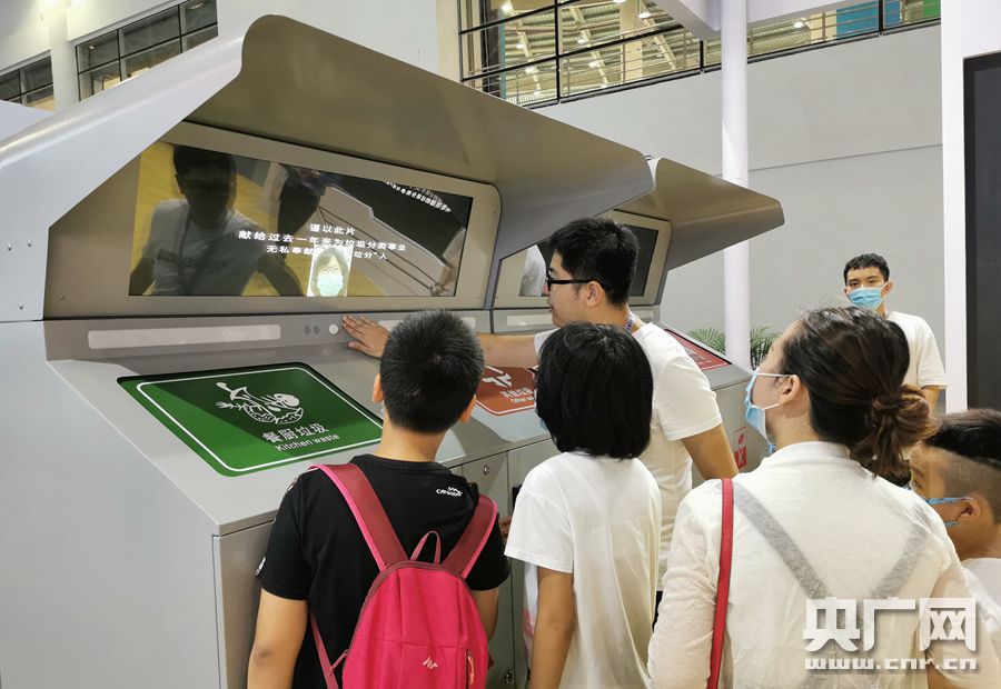 数字生态成果展区中,工作人员向观众演示智能垃圾分类(央广网记者 魏文欣 摄)