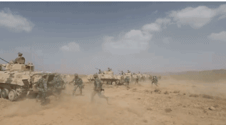 日前,一场实战化对抗演练在贺兰山下展开,红军地面突击群在远程火力的掩护下,兵分三路快速向敌前沿发起冲击。