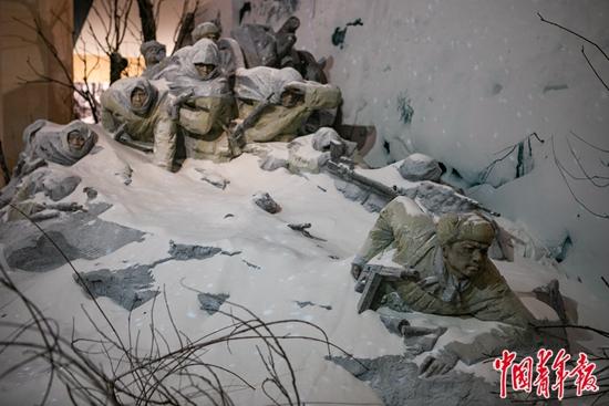 “鏖战长津湖”场景复原。中青报·中青网见习记者 曲俊燕/摄