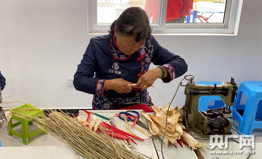 制作草编的巧娘(央广网记者 郑皓月 摄)