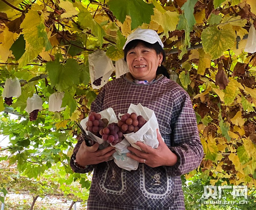 采摘葡萄的王爱霞(央广网记者 郑皓月 摄)