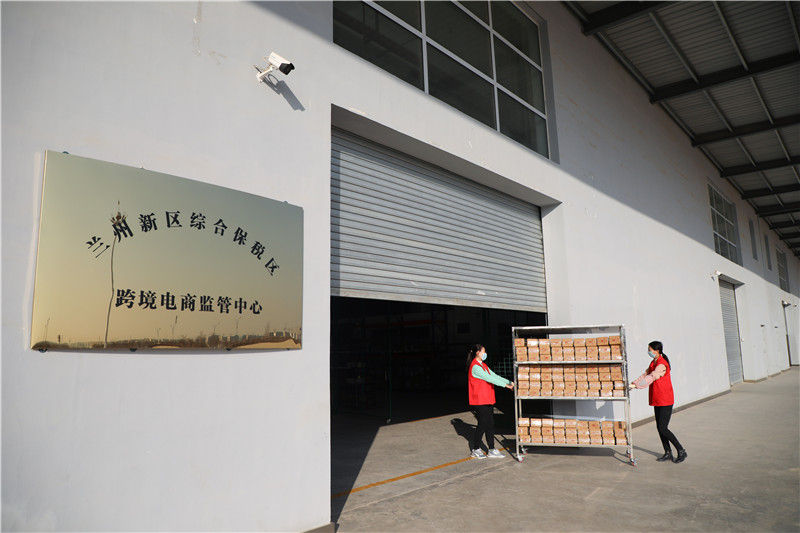11月11日,在兰州新区综合保税区跨境电商监管中心,工作人员在搬运货品。新华社记者 马希平 摄