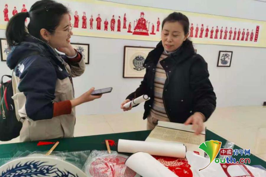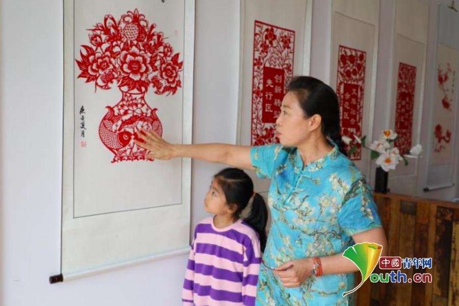 晋源“巧媳妇”赵敬玲正向学生展示剪纸技艺。晋源区新闻中心供图