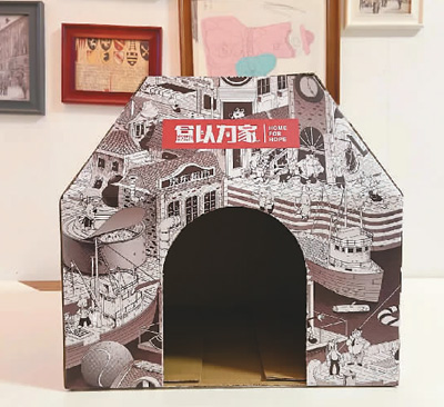 京东物流用废旧快递盒制作的“爱心小窝”。这些“爱心小窝”既可以提醒人们注重环保包装的实用,也体现了对流浪动物的关爱。京东集团供图