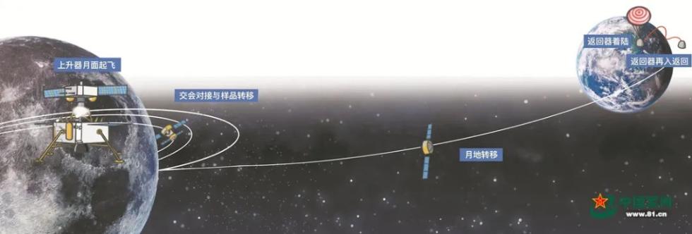 当返回器“吞入”样品、关上盖子,轨道器和返回器组合体与上升器分离,在预定时机加速进入月地转移轨道,踏上回家的路。