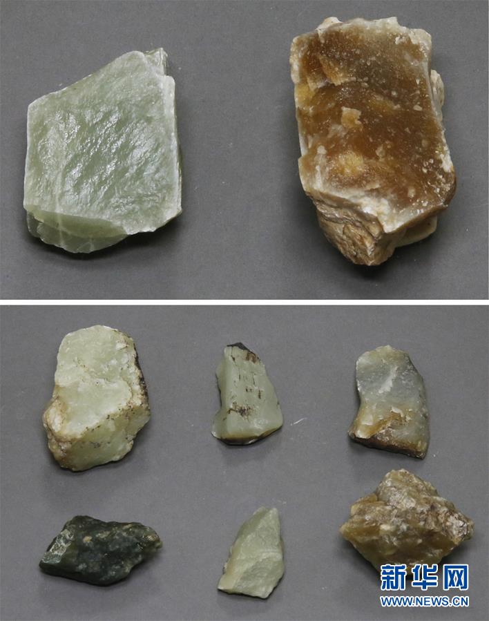 甘肃敦煌旱峡玉矿遗址出土的玉料(拼版资料照片)。新华社发(中国文物报社供图)