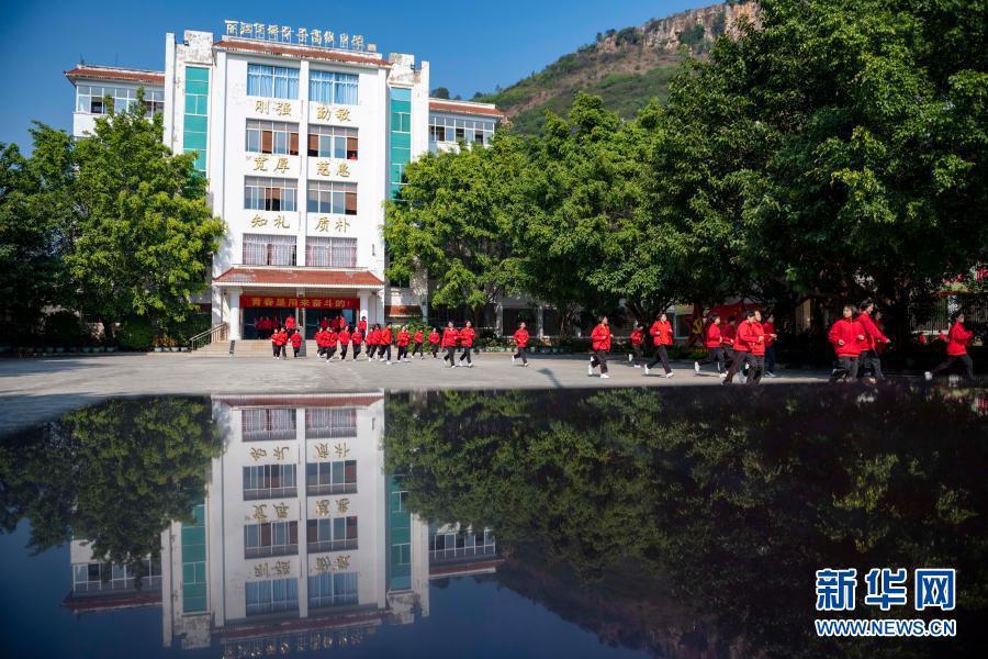 华坪女高学生从教学楼跑向食堂吃饭(11月30日摄)。新华社发(陈欣波 摄)