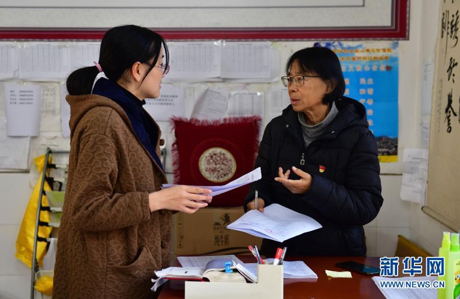 张桂梅(中)在教室里检查学生上课情况(12月1日摄)。新华社发(陈欣波 摄)