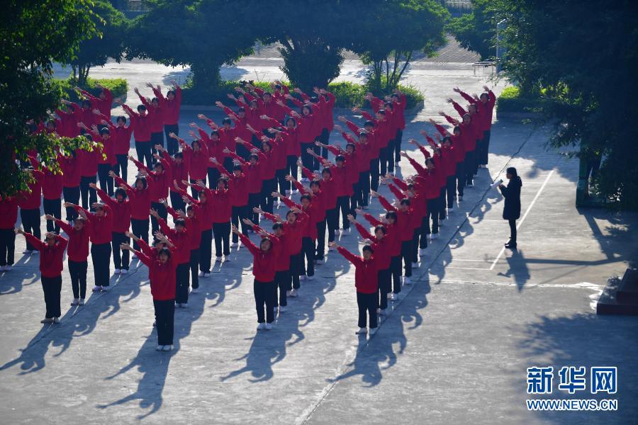 张桂梅在督促学生做课间操(12月2日摄)。新华社发(陈欣波 摄)