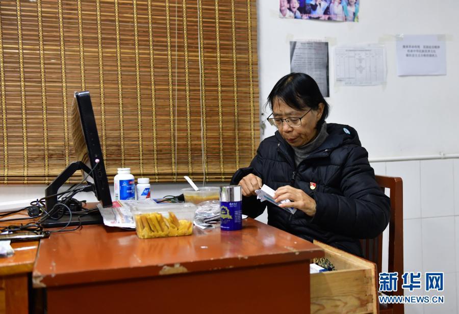 早上六点多,张桂梅在吃药(12月2日摄)。新华社发(陈欣波 摄)
