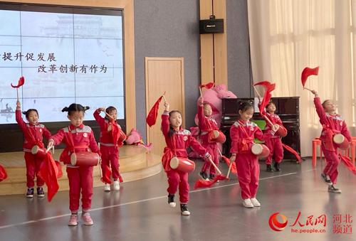 北京市六一幼儿院雄安院区的孩子们在表演腰鼓舞。 人民网付兆飒摄
