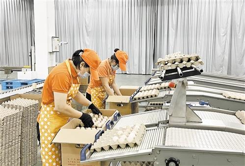 在沙县小吃产业园内,福建乐子食品科技有限公司员工正在给筛选好的鸡蛋装箱。记者 薛志伟摄