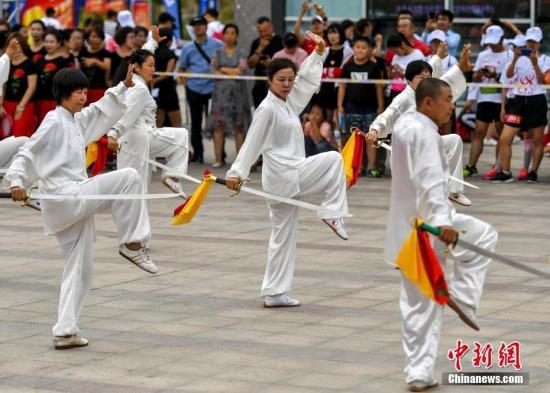 资料图:新疆太极拳协会展示的东岳太极刀。中新社记者 刘新 摄