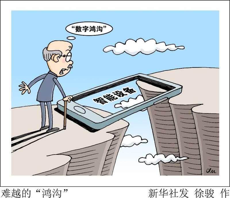 面对“数字鸿沟”,有人说,老年人是互联网时代的“数字难民”——因为不会使用微信支付,他们被超市和菜市场“嫌弃”;因为不会网上购票,他们在人潮涌动的火车站艰难排队;老人因为不使用智能手机无法提供健康码,被公交拒载,甚至与疫情防控人员发生肢体冲突。不久前,一位老人独自冒雨交医保却因工作人员拒收现金被拒之门外……统计数据显示,我国60周岁及以上人口2.5亿,60岁及以上网民只有0.6亿,还有近2亿的老年人没能搭上信息快车。