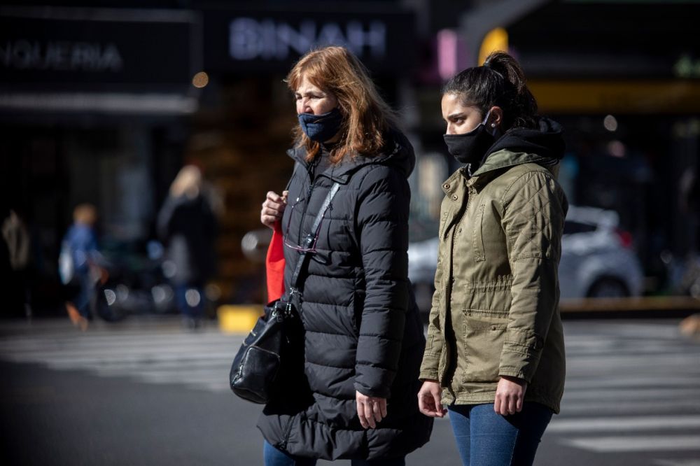 8月11日,在阿根廷布宜诺斯艾利斯,两名女子戴着口罩出行。(新华社发,马丁·萨巴拉摄)