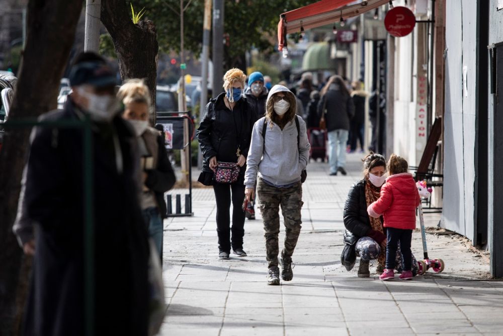 7月17日,人们戴着口罩走在阿根廷布宜诺斯艾利斯街头。(新华社发,马丁·萨巴拉摄)