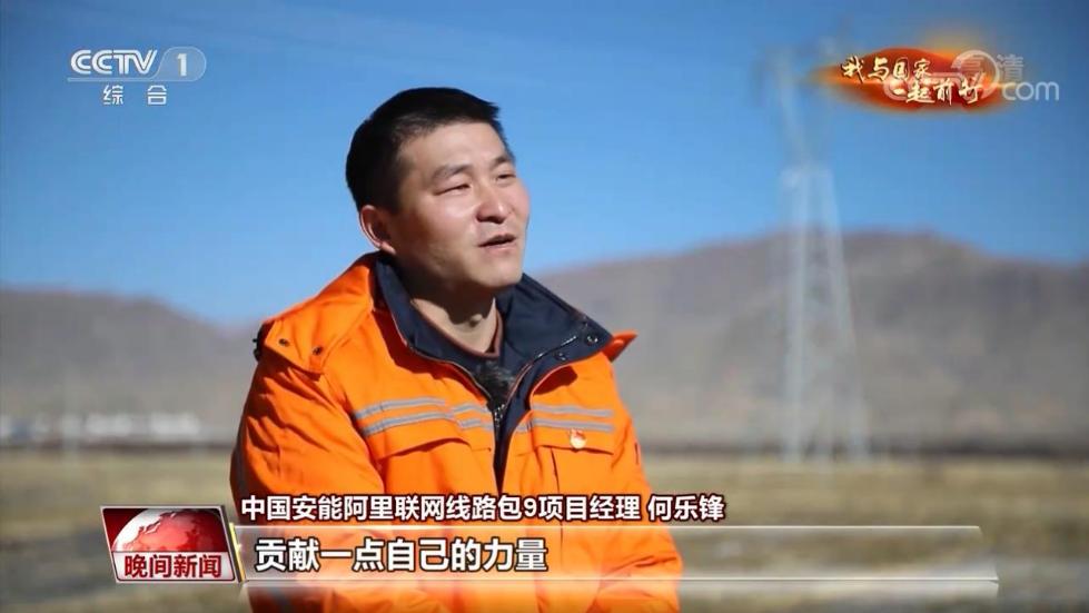 中国安能阿里联网线路包9项目经理 何乐锋: 每次我们在现场施工的时候,当地的牧民,老乡他们都会过来看一看,每一次我们都会斩钉截铁地告诉他们,我说保证能在年底之前给你们送上电。看到老乡满脸的笑容,我们心里就是真的是这种幸福感,真的就是感觉在老乡们脱贫致富的道路上我们能给他们点上一盏灯,贡献一点自己的力量。