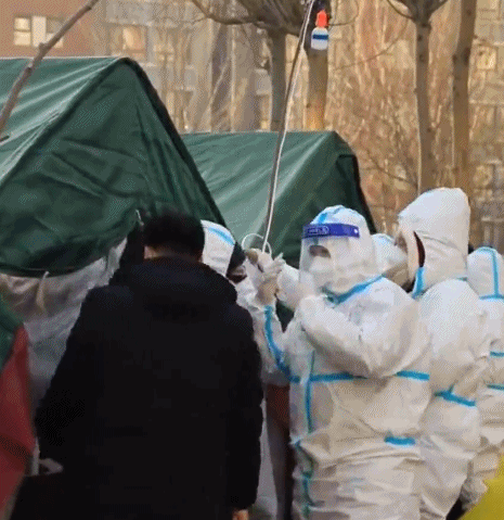 在寒冷的室外为市民做核酸采样