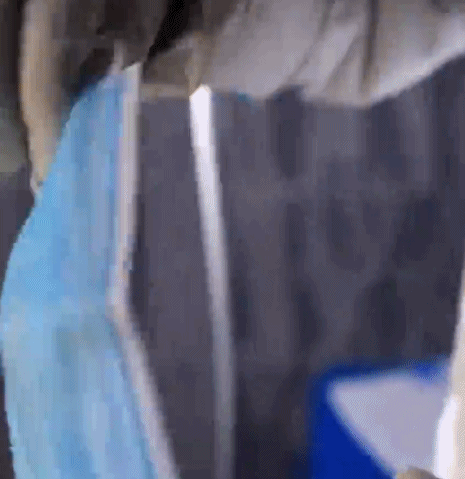社区网格员金英爱的口罩由于吸气呼气
