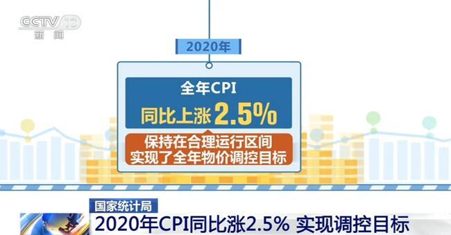 2020年全年CPI同比上涨 2.5%,保持在合理运行区间,实现了全年物价调控目标。