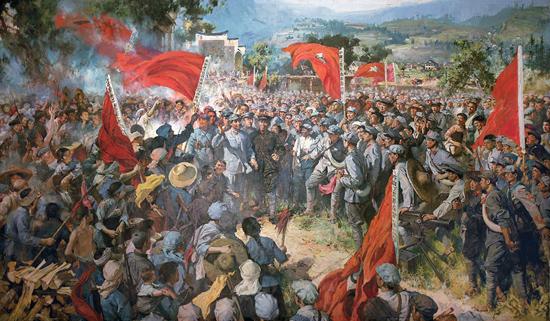 何孔德油画作品《井冈山会师》(局部)。井冈山革命博物馆供图